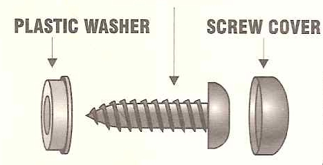 Hardware caps: When installing the screws--don't over-tighten them. You are only installing a license plate and frame. It doesn't take a lot of torque to hold it on the vehicle (unlike a wheel). Over-tightening of the screws distorts the retainers and makes it very difficult to snap the screw covers in place. Screw covers must "snap" onto the retainers or they will fall off. When properly installed the screw covers act as a theft deterrent.