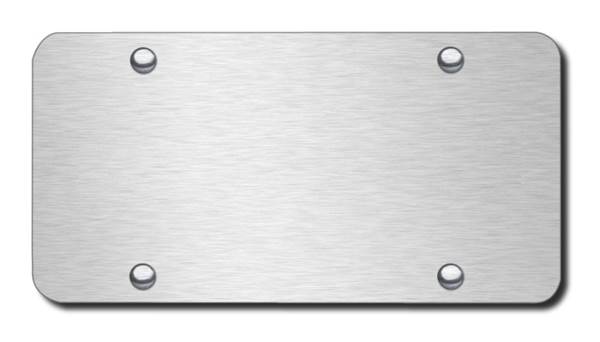The full sized Brushed plates are stainless steel with a brushed finish. Many kitchen and bathroom fixtures have a finish like this. They measure 6 x 12 inches (the same as a US license plate) and have 4 installation holes that are 7 inches apart. These plates are used for the Laser Engraved plates - the name and logos on these plates are flush with the plate, not 3 dimensional. An assortment of screws and matching screw cap covers are included with all the plates.